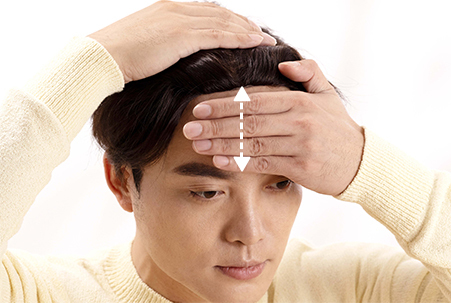 使用四隻手指橫放在眼眉上,量度出前額髮線的標準位置。