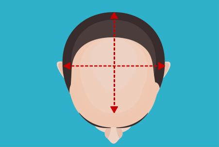 使用測量呎在頭頂上作十字形量度,計算出頭圍呎吋。